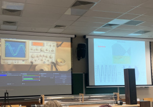 Zwieńczeniem wizyty był wyjątkowy wykład dr Rafała Ledziona z Instytutu Fizyki PŁ pt. „Natura drgań: Mechanika fal w doświadczeniach”. Fascynujące eksperymenty i wciągające opowieści zrobiły na wszystkich ogromne wrażenie.