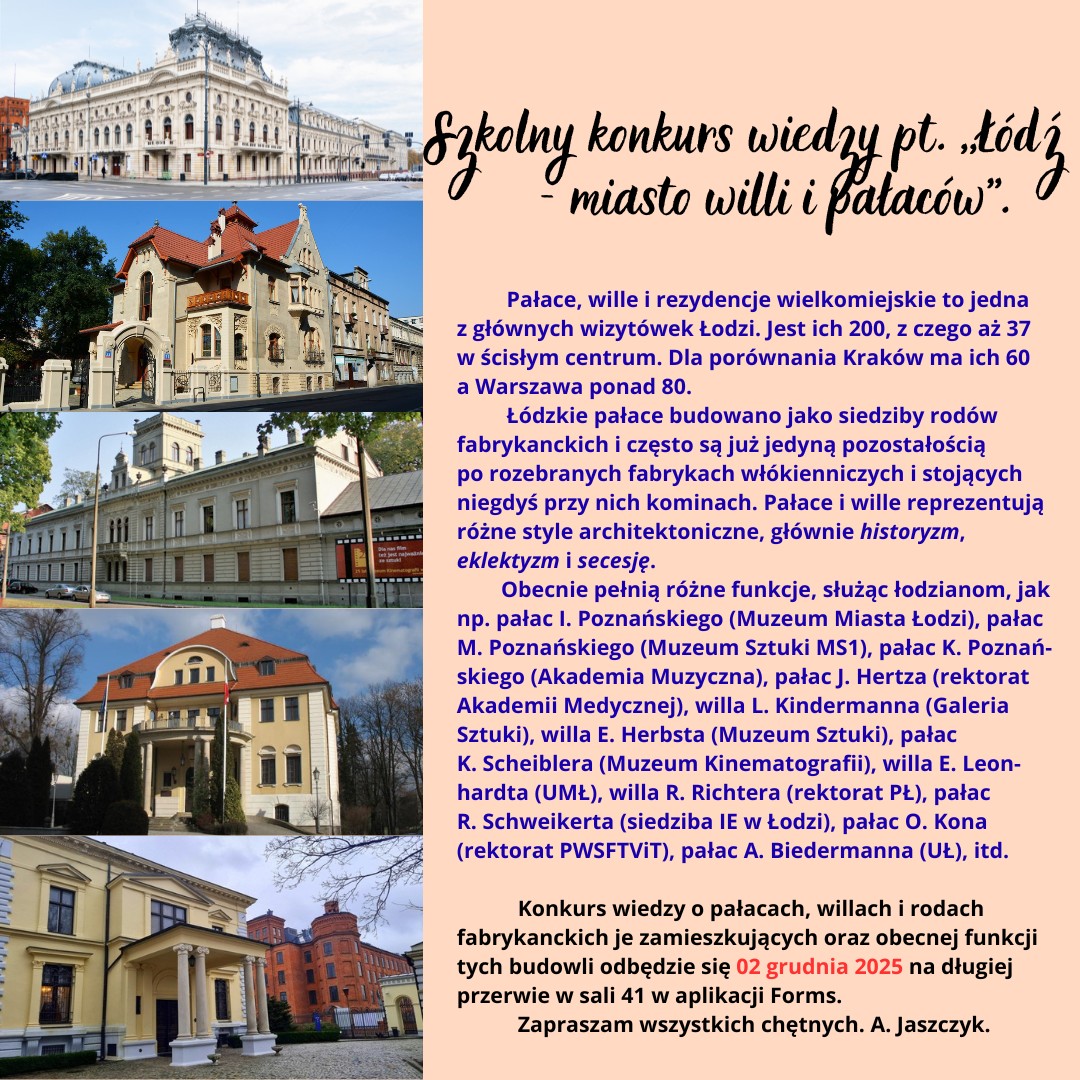 Regulamin szkolnego konkursu wiedzy: „Łódź - miasto willi i pałaców."